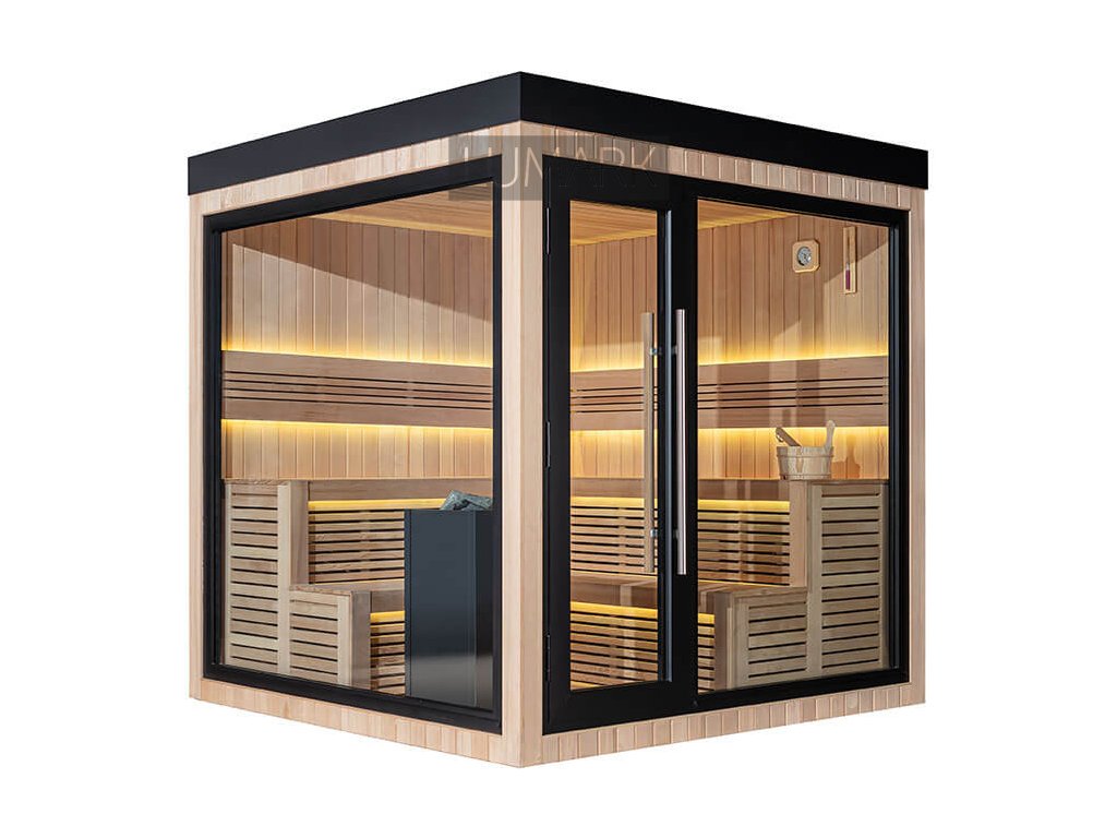 Mit der Kuutio-Serie haben wir eine Gartensauna geschaffen, die Design, Komfort und Vielseitigkeit auf höchstem Niveau vereint – ideal für private Wellness oder anspruchsvolle kommerzielle Nutzung. Diese Sauna, erhältlich in den Formaten 2,35 × 2,35 m oder 3,00 × 2,35 m, überzeugt durch ihre klare Designsprache und die einzigartige Kombinierbarkeit mit unseren Pergolen – im Standard X7, mit optionalen Modellen X4–X7. Die Kuutio-Serie ist mehr als nur eine Sauna – sie ist ein architektonisches Statement, das Ihren Garten in eine exklusive Wellness-Oase verwandelt.Zusätzliche Parameter