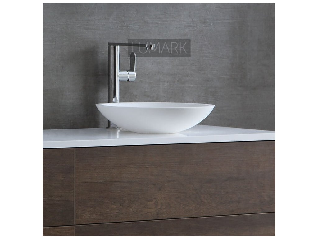 In the glossy version, an additional surface coating is applied. This is already very hard and protects the product. By using a process specially developed for our production during the final surface finishing, the glossy version does not reflect excessively, which also achieves a very good "stone feel" here. The product thus appears more natural than normal glossy mineral casting or ceramics.