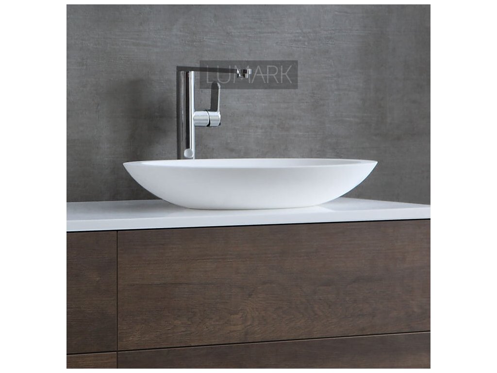 In the glossy version, an additional surface coating is applied. This is already very hard and protects the product. By using a process specially developed for our production during the final surface finishing, the glossy version does not reflect excessively, which also achieves a very good "stone feel" here. The product thus appears more natural than normal glossy mineral casting or ceramics.