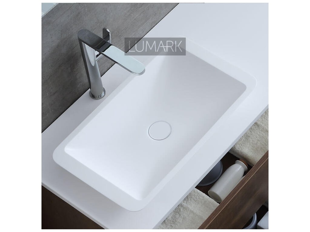 In the glossy version, an additional surface coating is applied. This is already very hard and protects the product. By using a process specially developed for our production during the final surface finishing, the glossy version does not reflect excessively, which also achieves a very good "stone feel" here. The product thus appears more natural than normal glossy mineral casting or ceramics.