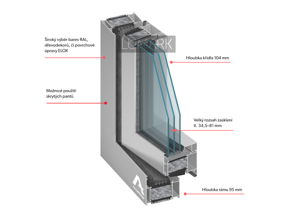 - stavební hloubka rámu 95 mm, křídla 104 mm