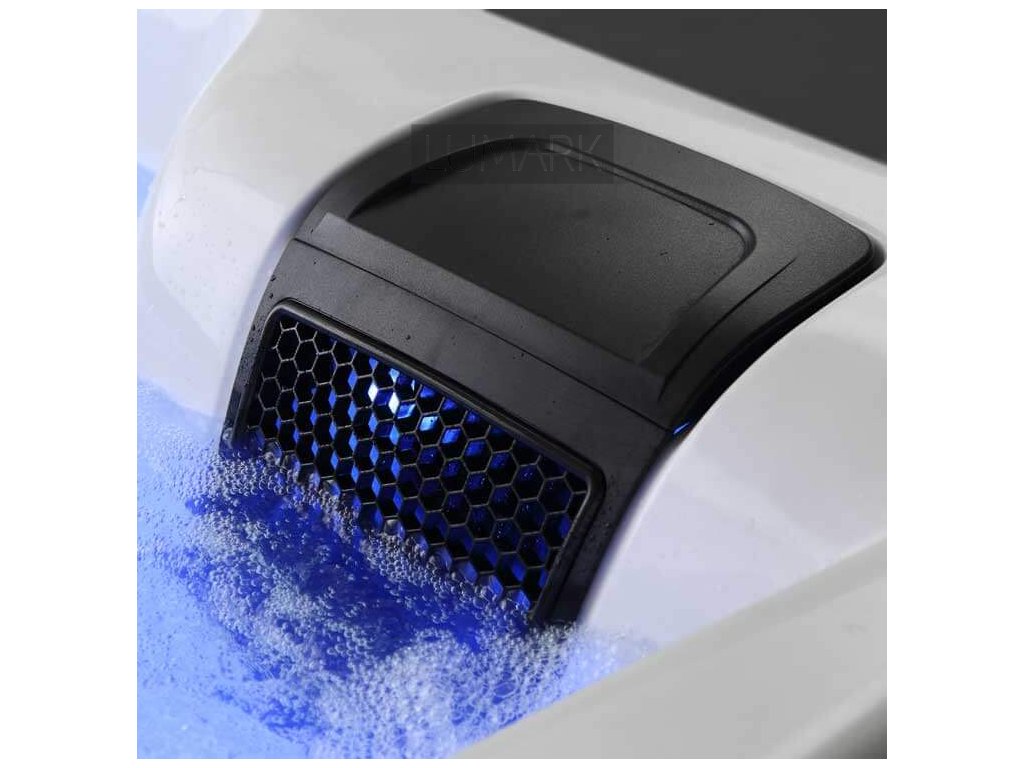 - Jemné LED osvětlení (42 lamp) pod hlavovými spády, ve filtrační oblasti a v bazénu